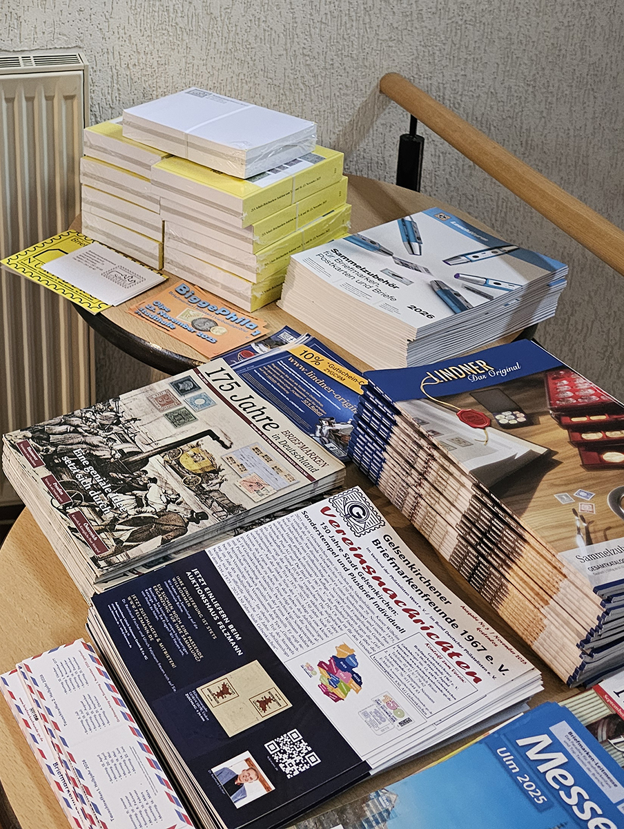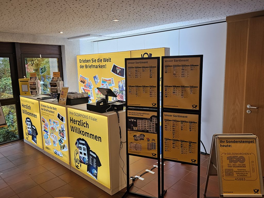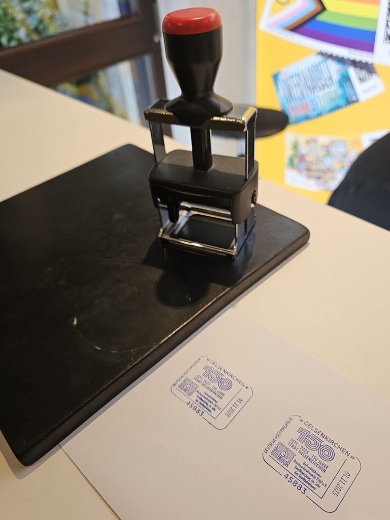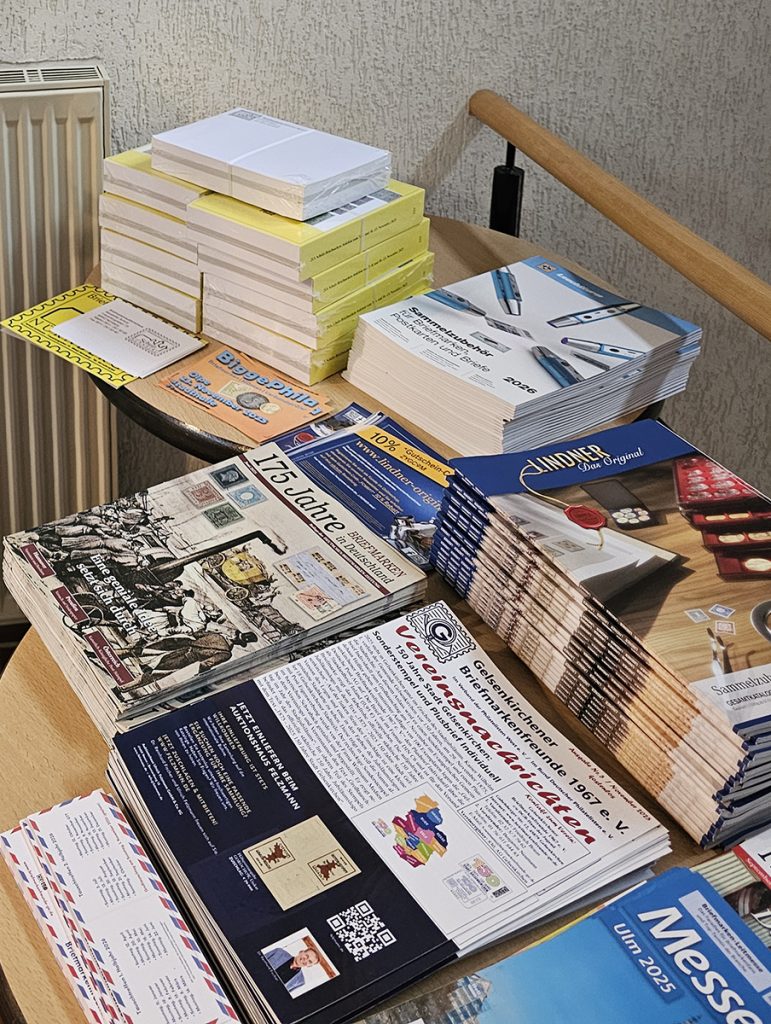 Heiß begehrt war zudem der vom Verein aufgelegte Plusbrief Individuell zum 150. Stadtjubiläum von Gelsenkirchen und der dazu passende beim Event-Team Philatelie der Deutschen Post AG erhältliche Sonderstempel. Briefmarkensammlungen zur Postgeschichte von Gelsenkirchen und zum FC Schalke 04 gab es ebenfalls zu bestaunen. Das Beratungsangebot vom Auktionshaus Felzmann wurde ebenfalls gut angenommen. Auch das Kuchen- und Brötchenangebot fand reißenden Absatz.
