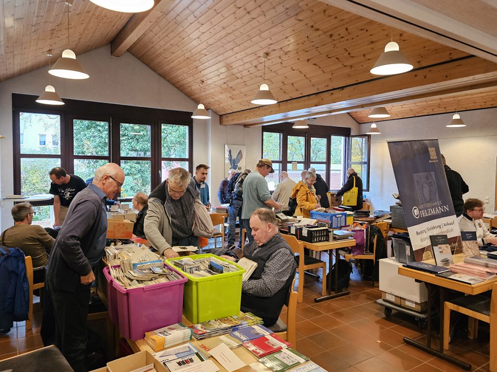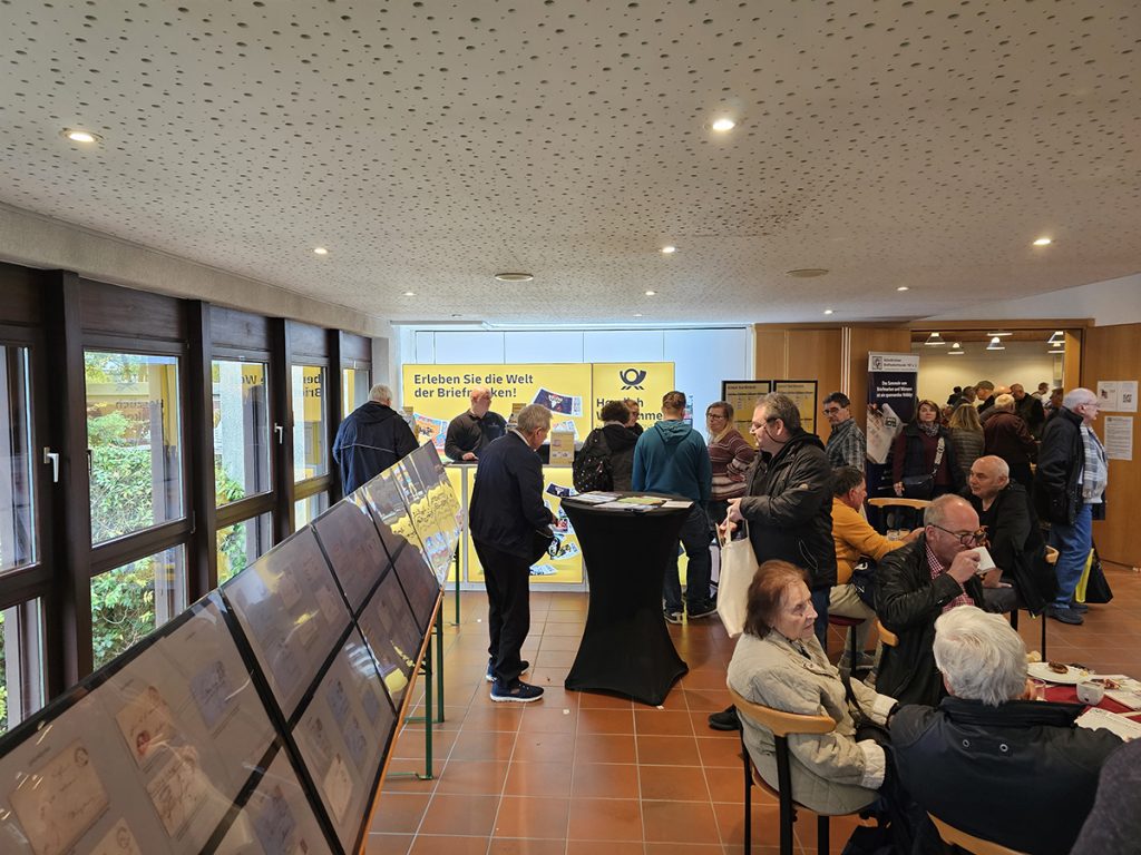 Über 400 Besucher konnten im Tagesverlauf gezählt werden, teils sogar extra aus Hessen, Baden-Württemberg und den Niederlanden angereist. Alle Tische im Saal waren schon im Vorfeld ausgebucht, so dass die Besucher in einem umfangreichen Angebot an Briefmarken. Briefen, Ansichtskarten und Münzen stöbern konnten.