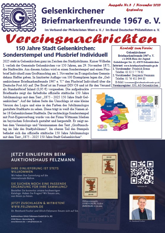Die „Gelsenkirchener Briefmarkenfreunde 1967 e. V. “ geben in unregelmäßigen Abständen gedruckte Vereinsnachrichten heraus.