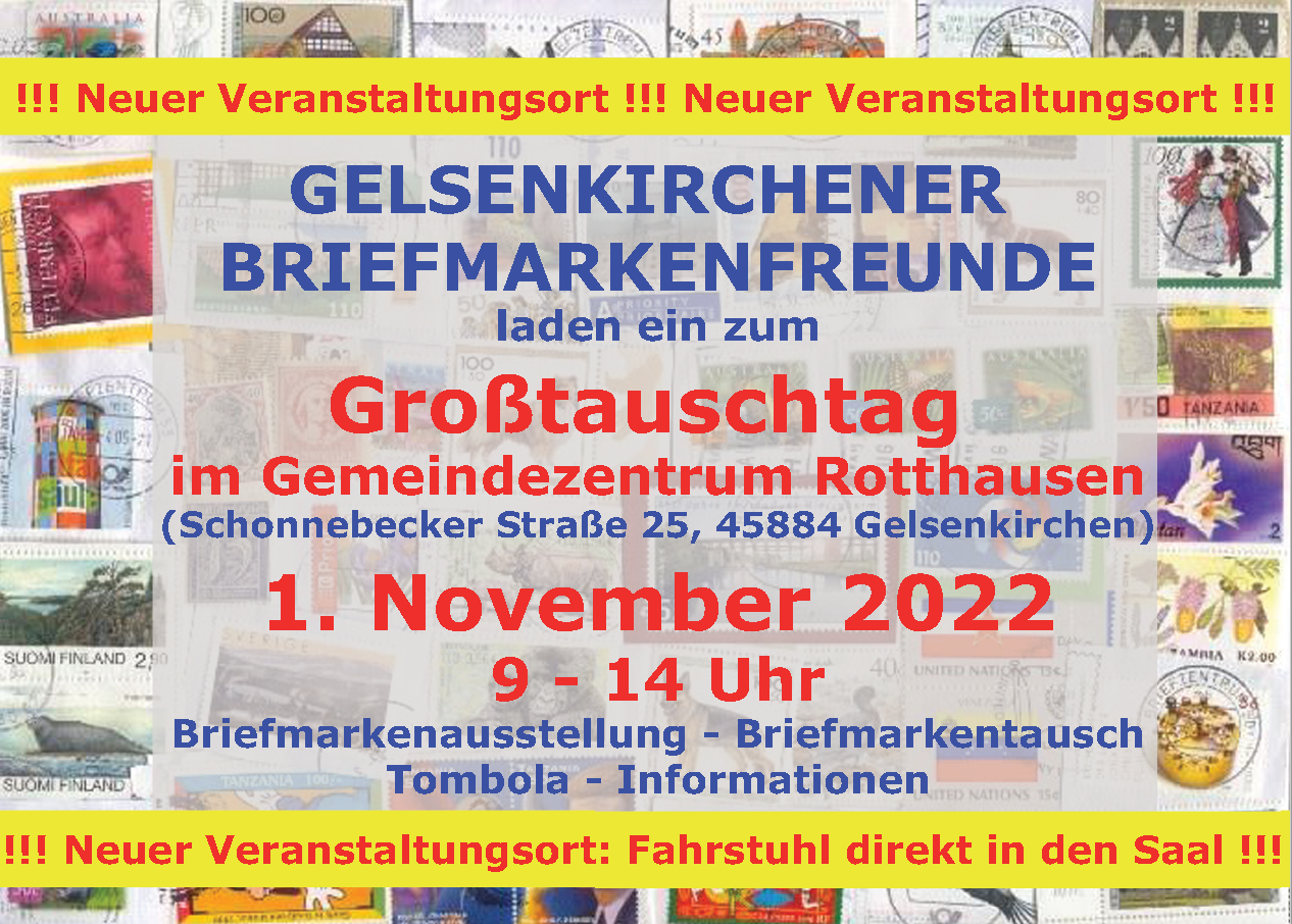 Der traditionelle „Großtauschtag mit Briefmarkenschau“ der Gelsenkirchener Briefmarkenfreunde 1967 e.V. am 1. November eines Jahres ist ein seit Jahrzehnten etablierter