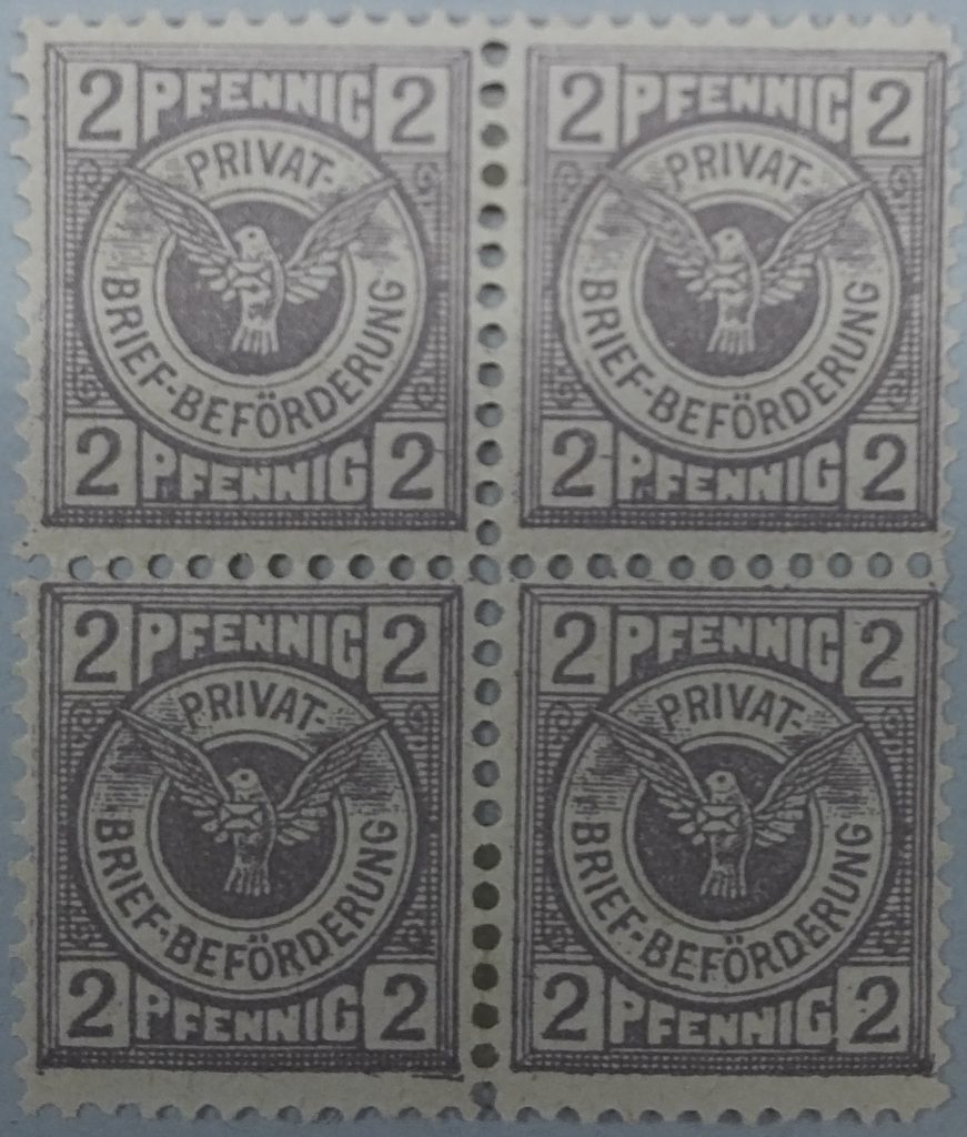 Viererblock 2 Pfg. graulila, Marken grob gezähnt