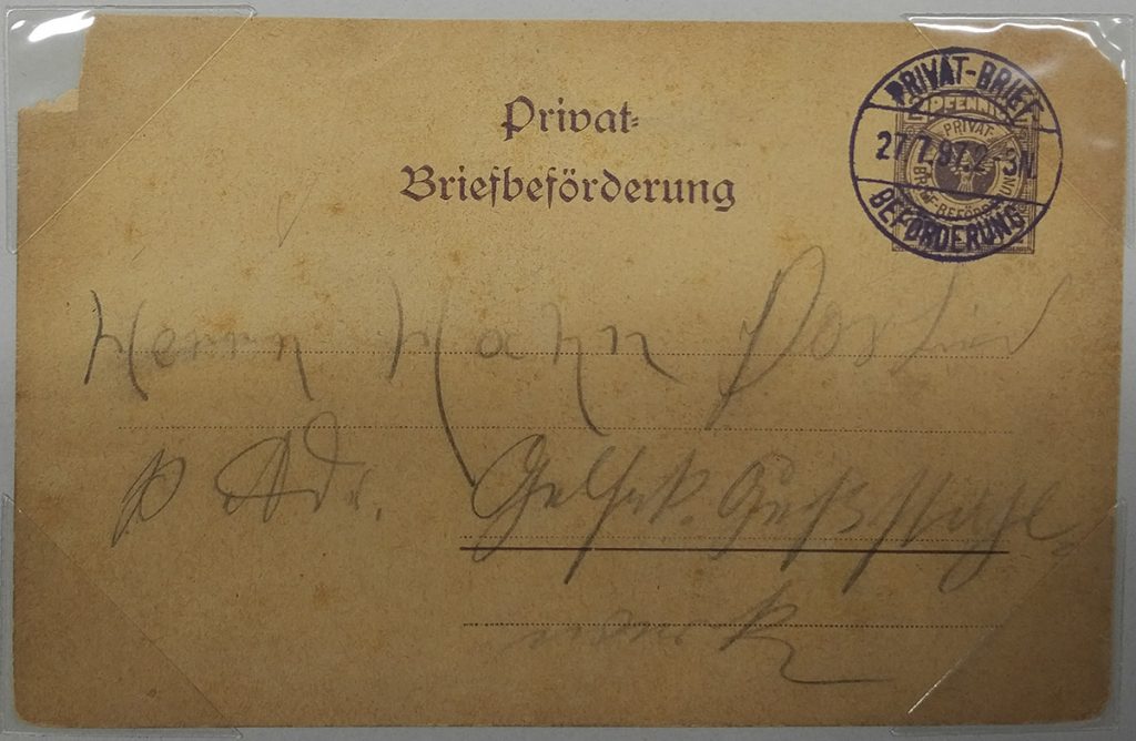 Text: Privat-Brief-Beförderung; Datum im Steg.